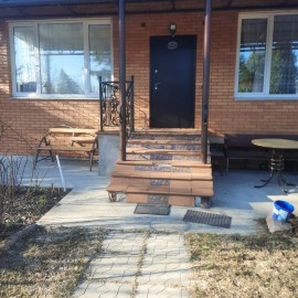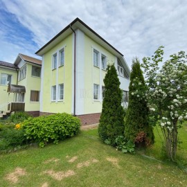 Код объекта 2912. Продаю прекрасный, капитальный дом 128 кв. м. из керамических блоков (стены с двойной теплоизоляцией, предназначен для круглогодичного проживания), облицован кирпичом, с отдельно стоящей баней и открытой лаунж территорией с каминно-мангальной зоной под...